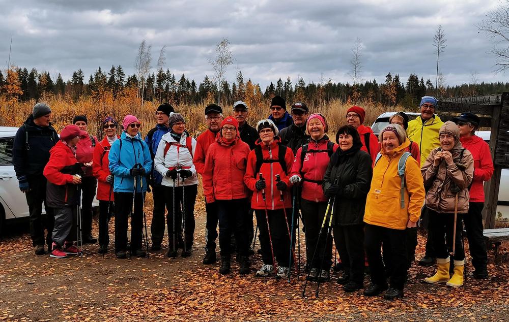 Aurinkoinen ilma ja maisemat mahtavat! Kävelyretki Kaijanharjulle- ja laavulle 11.10. Mukana yhteensä 24 kävelijää. Kaikki nauttivat ja jopa lähes kaikki jaksoivat kävellä koko 6 km matkan. Irma suunnittteli retken ja toimi pääoppaana. KIITOS IRMA!
