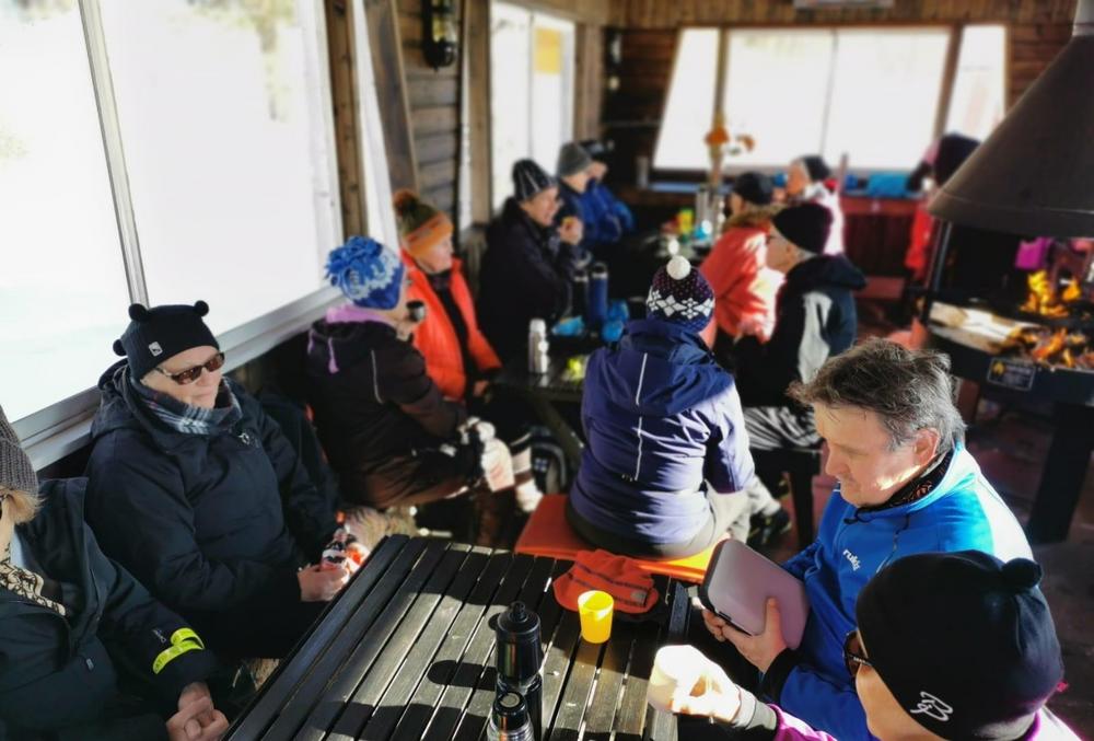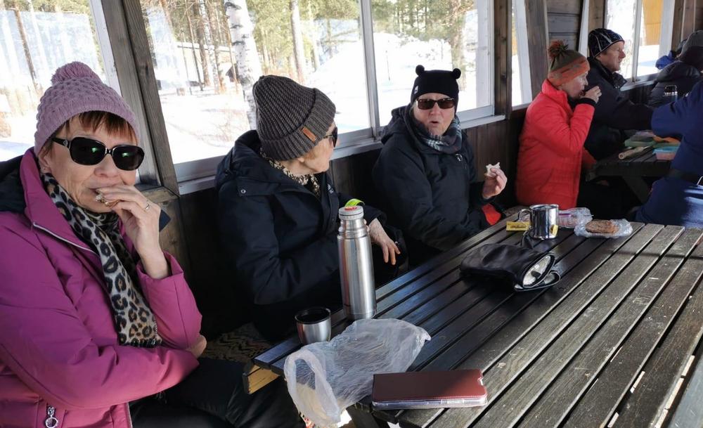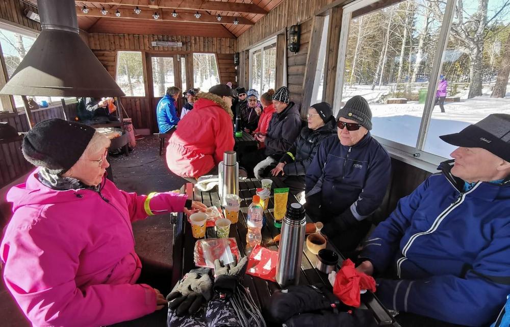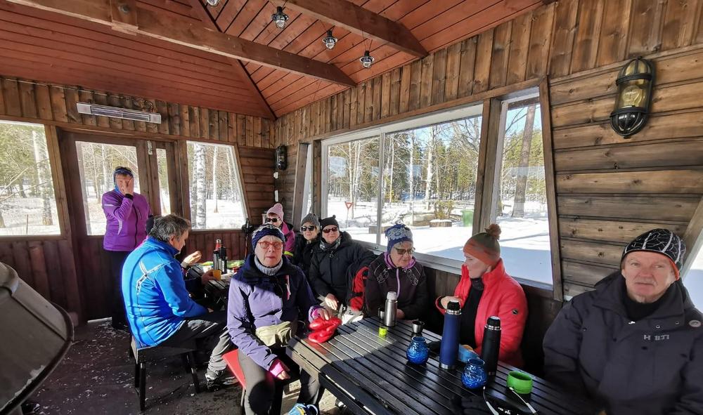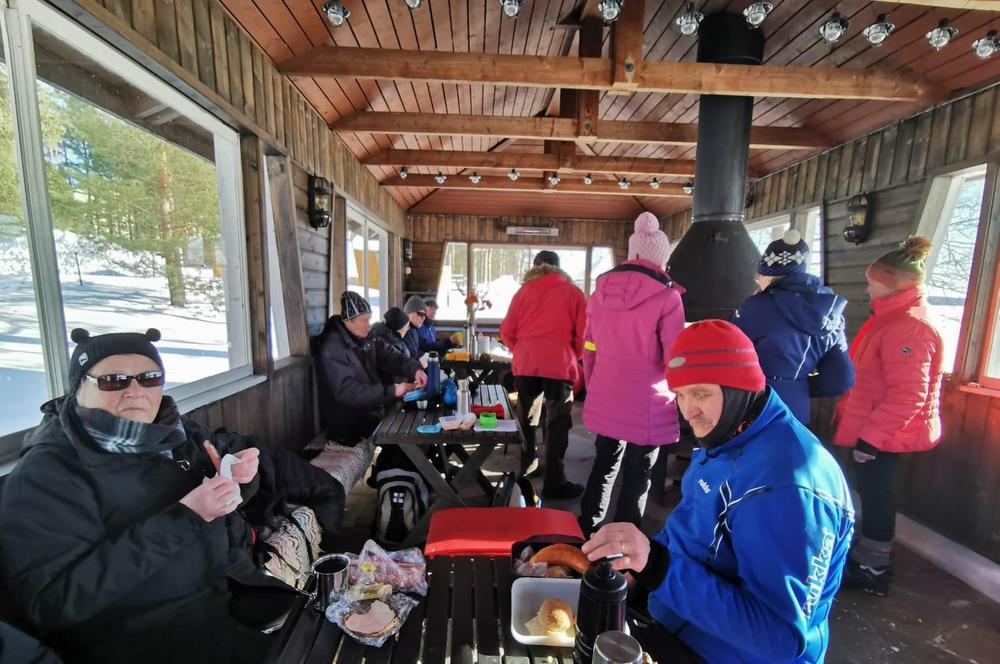 Käsikirjoituksen mukaan kokoonnuimme sataman (Malmirannan ) parkkiin klo 11.30. Kimppakyydein jatkoimme matkaa Punkaharjun Harjunportiin. Jalkauduimme jäälle ja laduille tavoiteena Kruunupuiston grilikattos. Kaikkiaan 17 osanotajaa päätyi taukopaikalle eri välinein ja eri mittaisten lenkkien jälkeen; luistimin, suksin, potkurein sekä kävellen. Tulistelun ja evästelyn jälkeen palasimme lähtöpisteeseen ja hajaannuimme hieman reilun kolmen tunnin reippailun jälkeen tahoillemme.