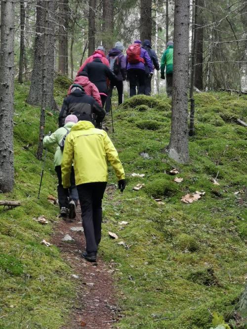 Maanantaina, ihanana, jopa välillä aurinkoisena syyspäivänä, lähtivät kaikki 16 patikoijaa kiertämään Olavinlampea.