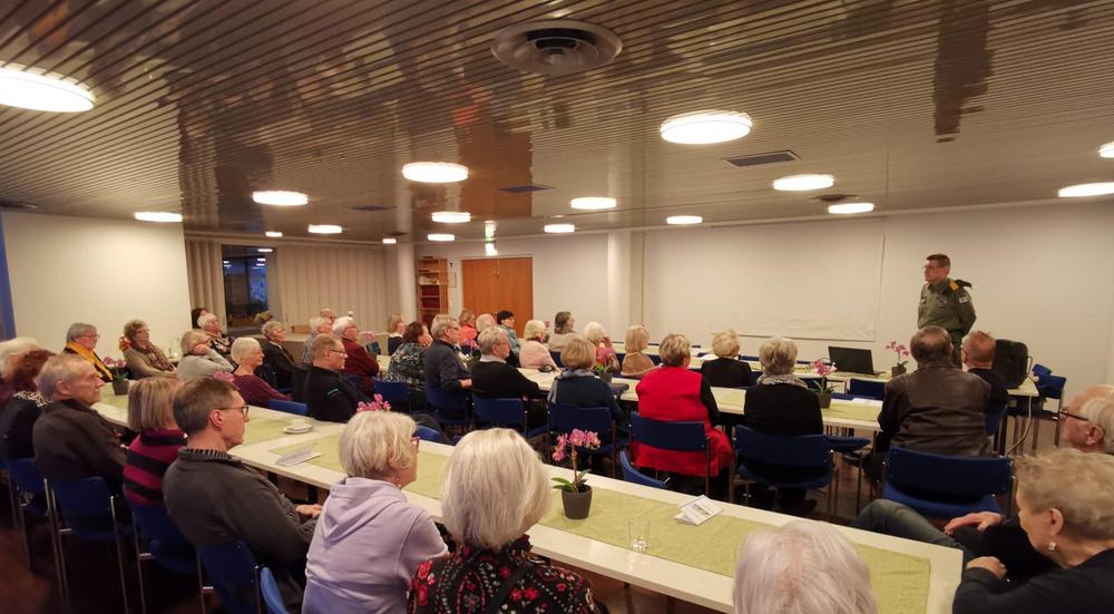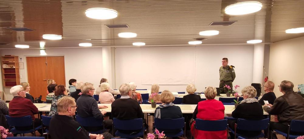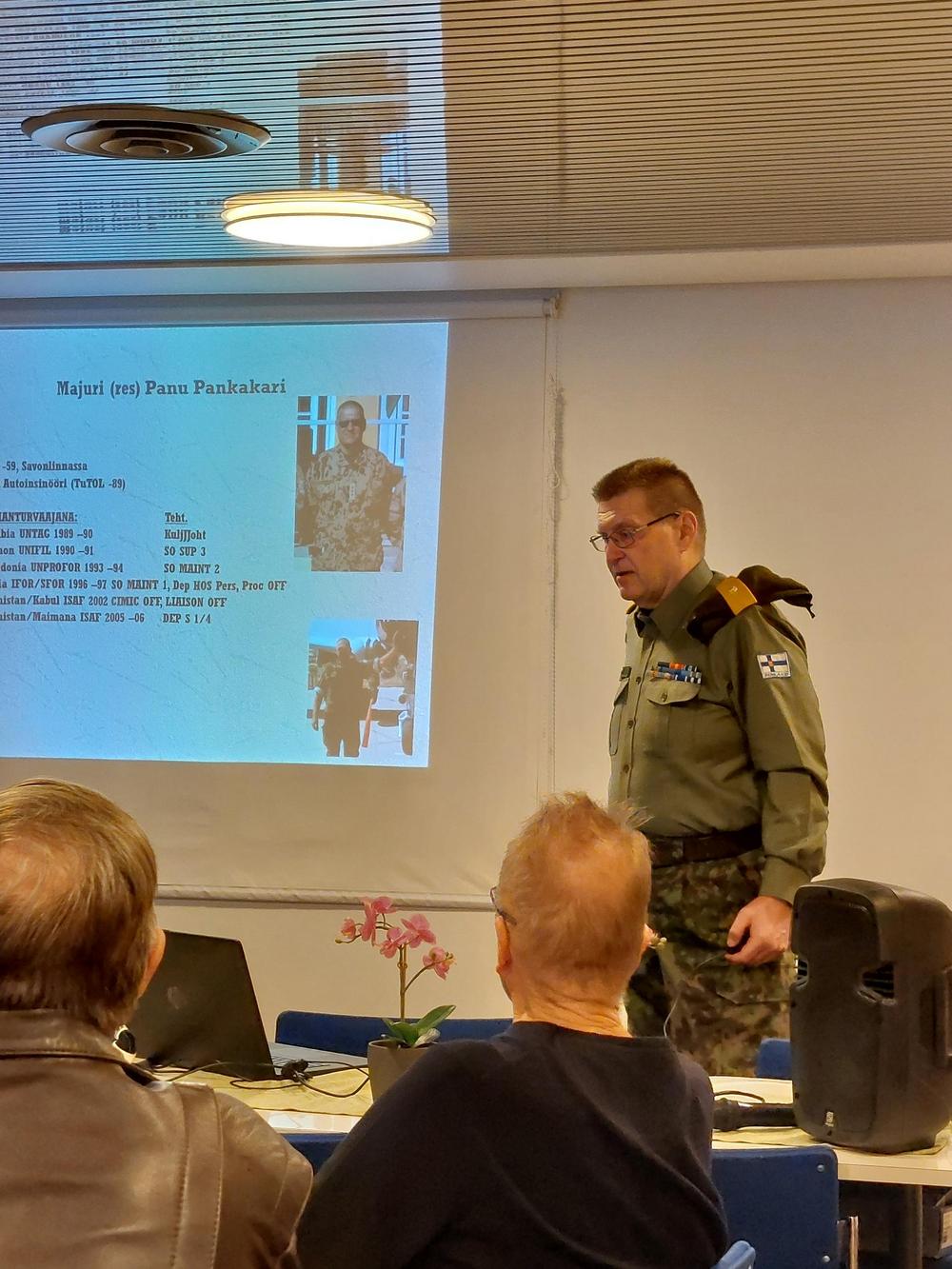Senioritapaaminen seurakuntakeskuksessa torstaina 19.1. Vieraanamme on reservin majuri Panu Pankakari. Hän kertoo rauhanturvaajan elämästä ja kokemuksista kriisien keskellä maailman eri kolkissa. Kuulijoita oli ennätysmäärä eli 48.