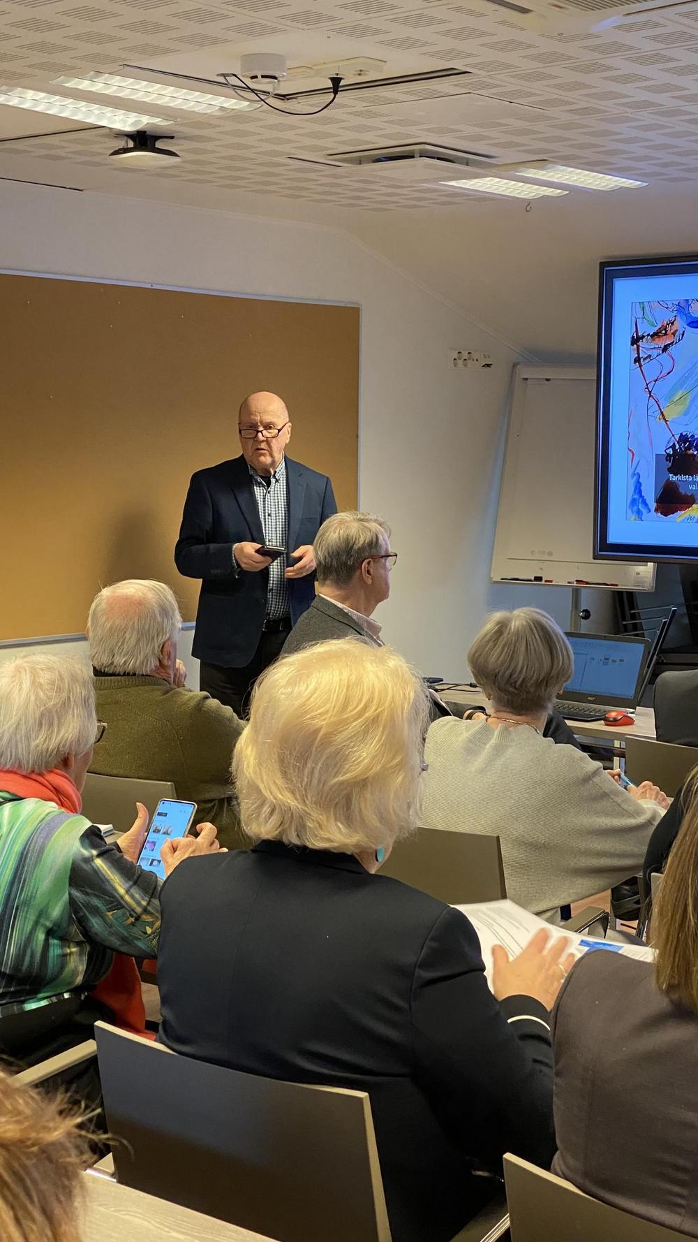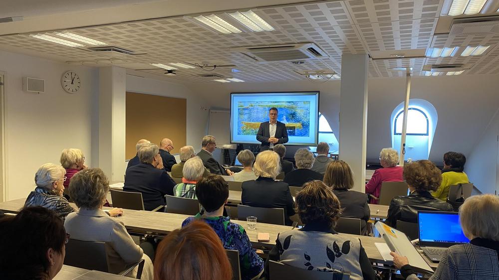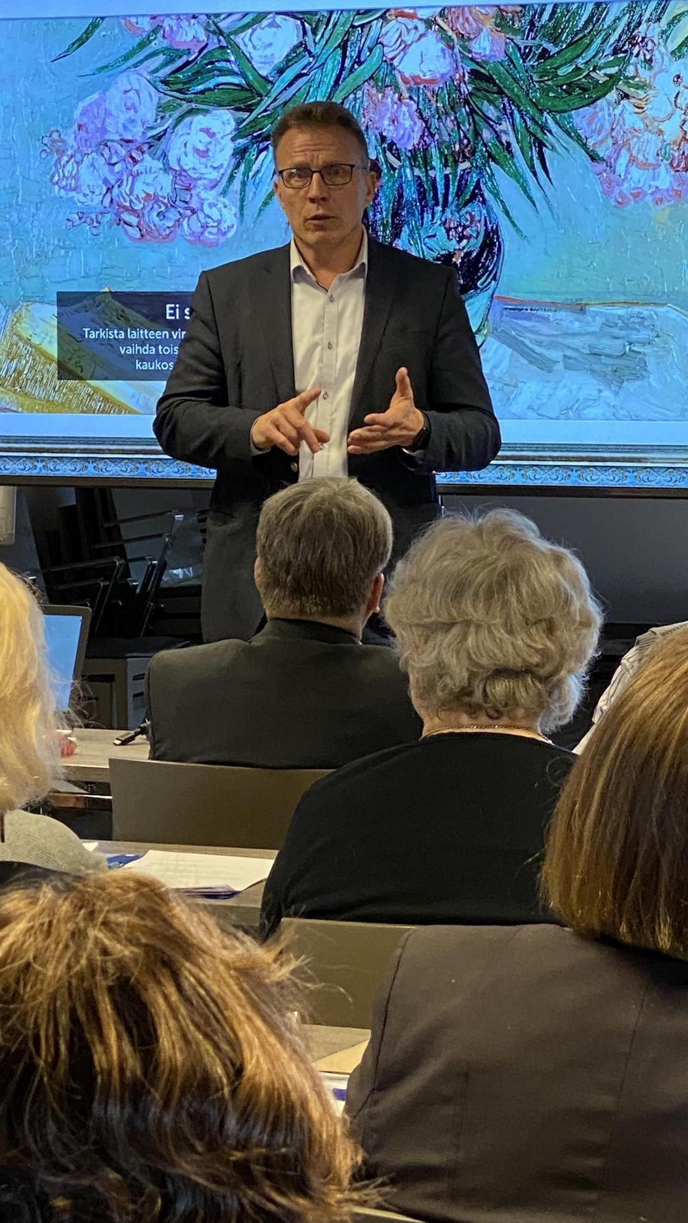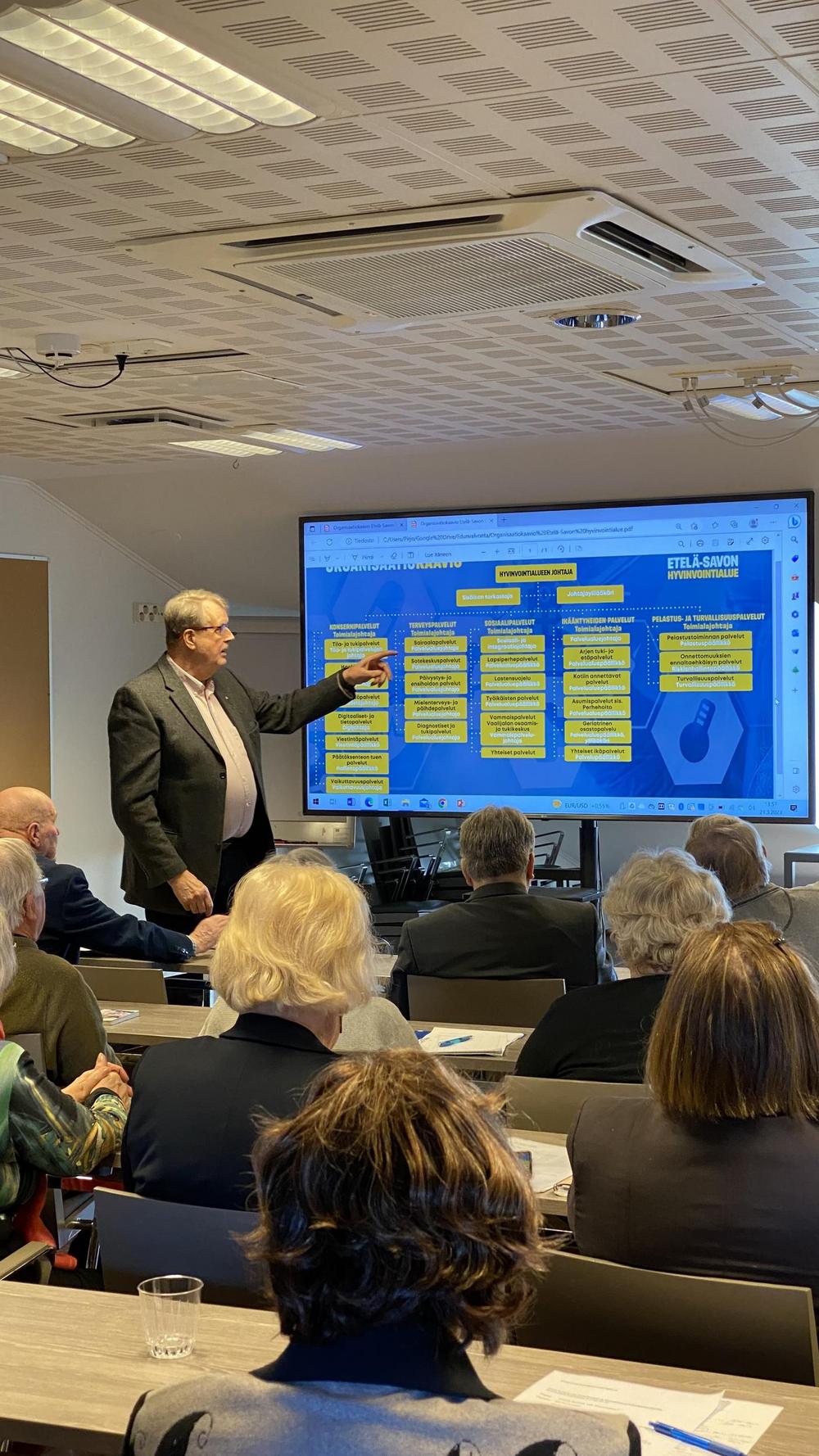 Hyvinvointialueiden nykytilanteesta keskusteltiin ja vaihdettiin kokemuksia Pekka Huovilan alustuksen pohjalta.
