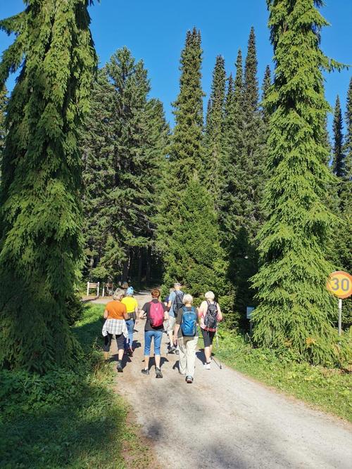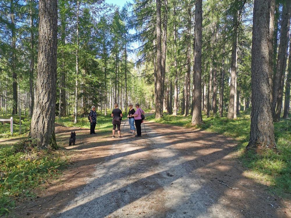 19 senioria nautiskeli upeasta kesäpäivästä Punkaharjun puulajipuiston poluilla.