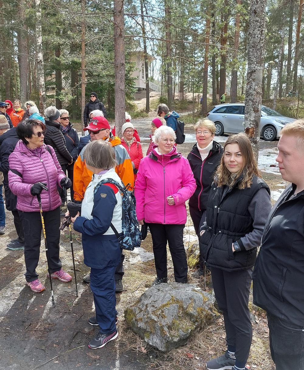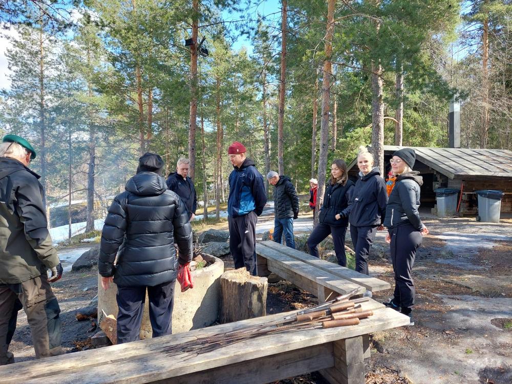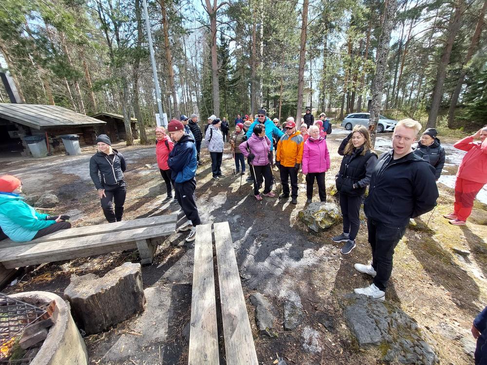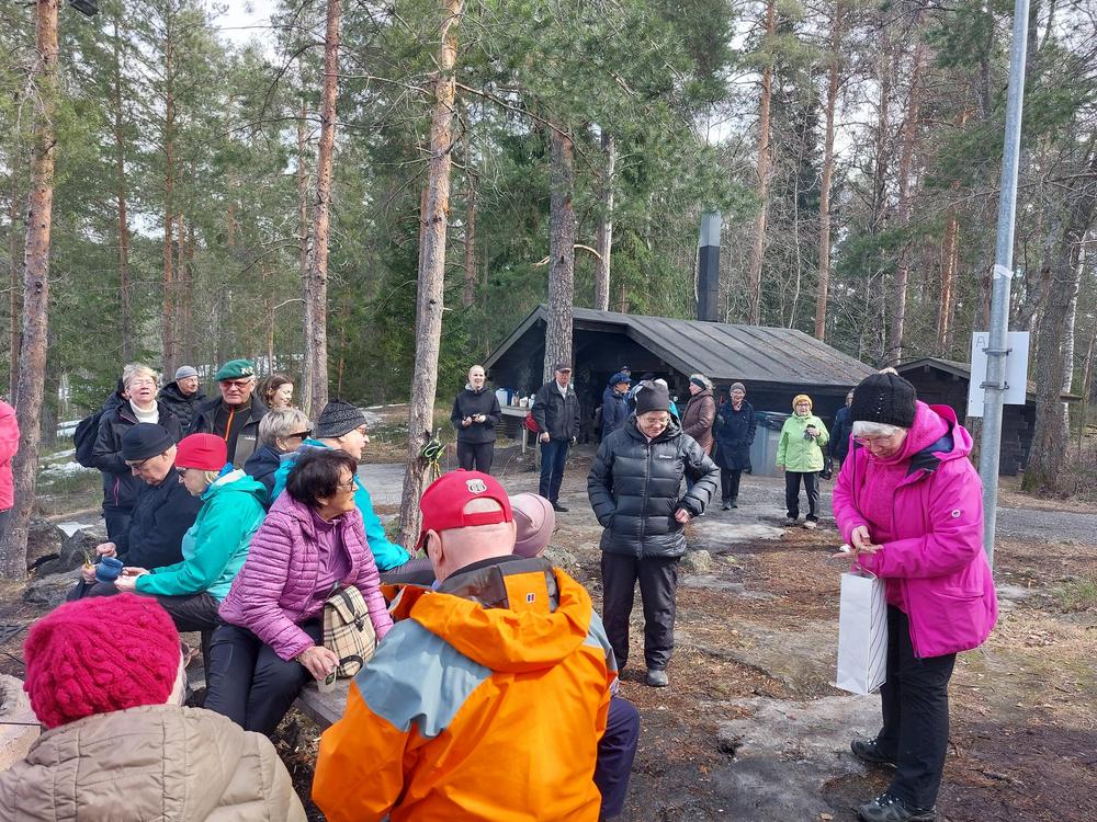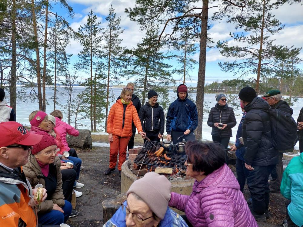 ”Meill on metsässä nuotiopiiri ♫♫” Ainakin Sulosaaressa oli mahtava nuotiopiiri 24.4. maanantaina, kun 55 senioria tapasivat nuotiotulien äärellä. Hyvinvointipäivän olivat meille järjestäneet sosionomiopiskelijat Nanne, Ada, Etti, Samuli ja Markku. Kylläpä nokipannukahvit ja makkarat maistuivat. Kiitos hyvinvointipäivästä, josta samalla tuli hyvänmielenpäivä!