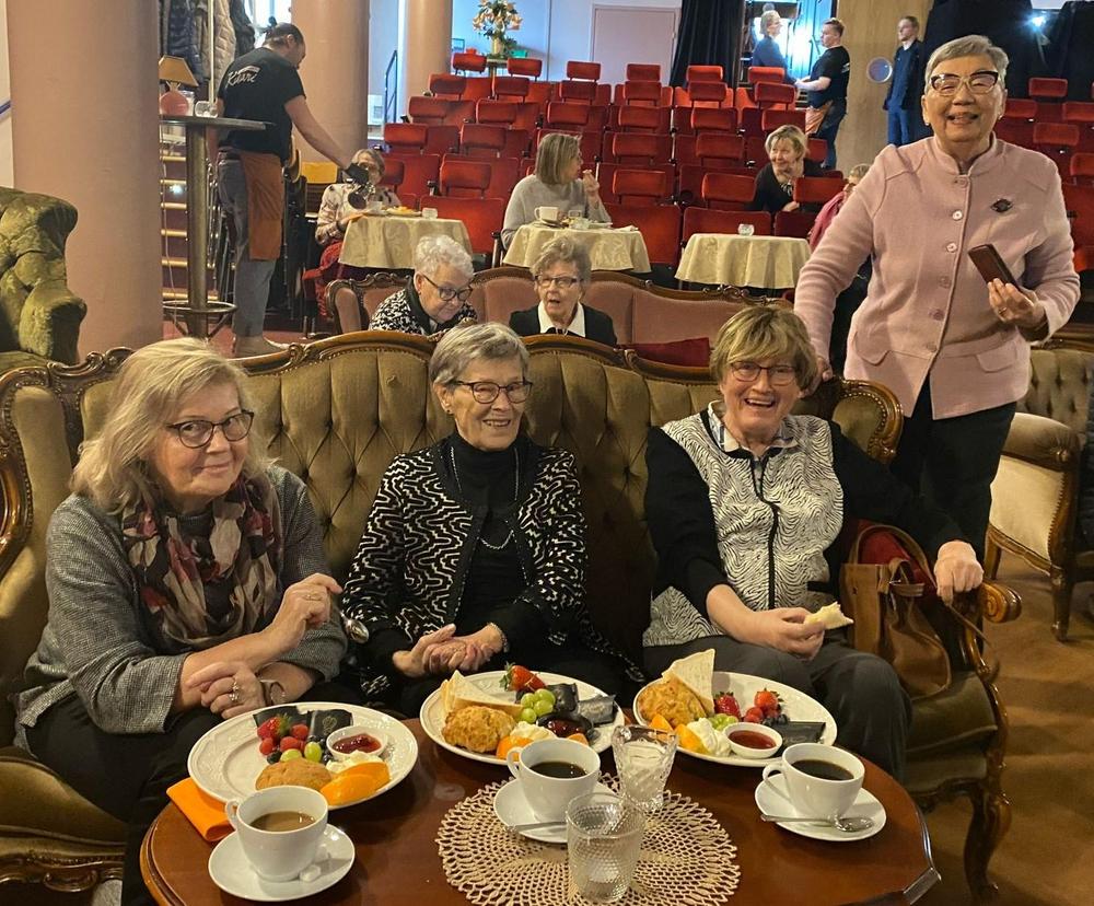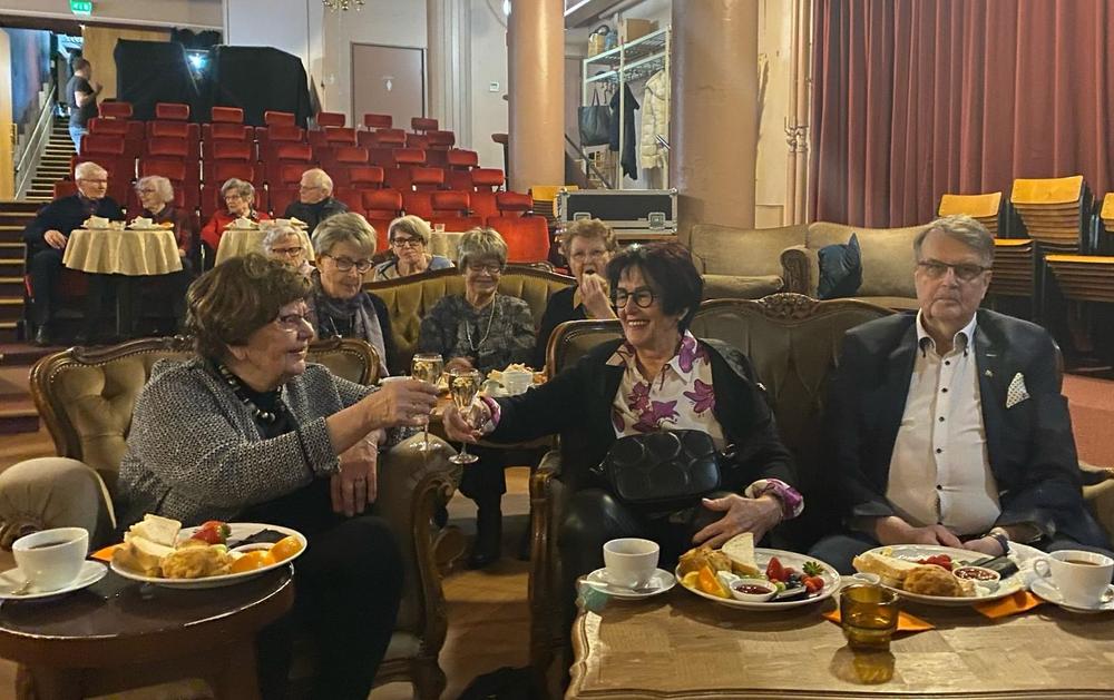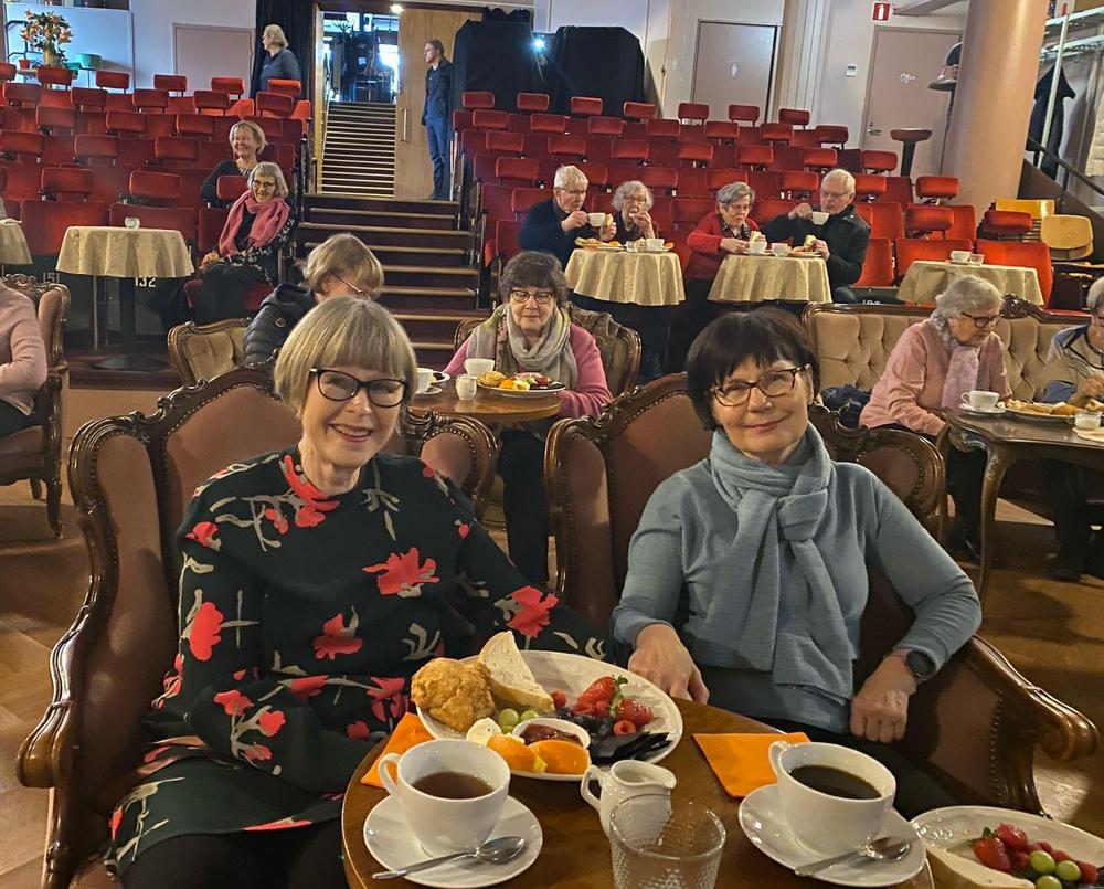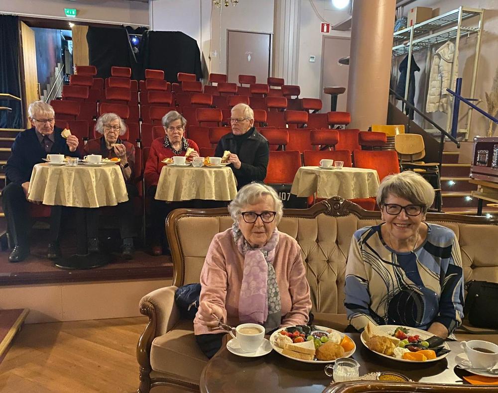 Tänään Kulttuurikellarissa järjestetyssä yksityisessä tilaisuudessa elokuvakerho vietti englantilaista iltapäivää. Mikä miljöö! Istuimme antiikkisohvilla katsellen "Kuningatar Elisabet" -elokuvaa, ja samalla nautimme englantilaisia herkkuja.