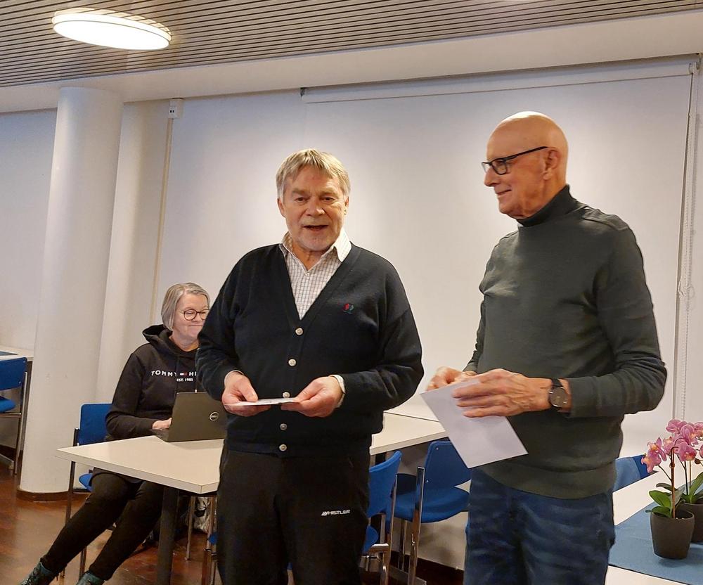 Tapaamisen alussa Senioriliiton pronssiset ansiomerkit luovutettiin Ville Kososelle ja Asko Kukkoselle. Parhaimmat onnittelut Ville ja Asko!
