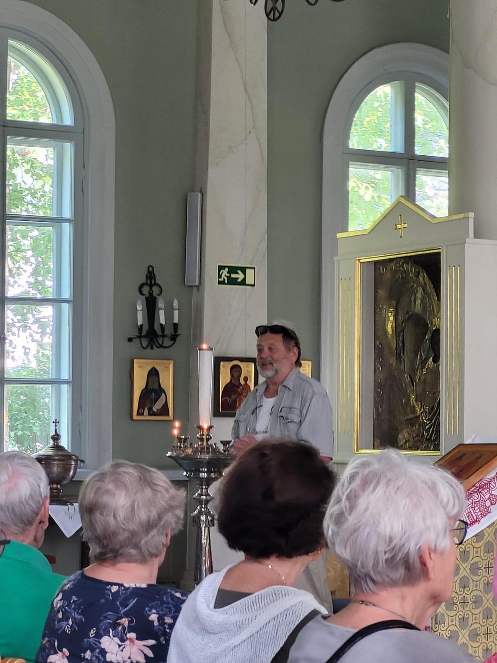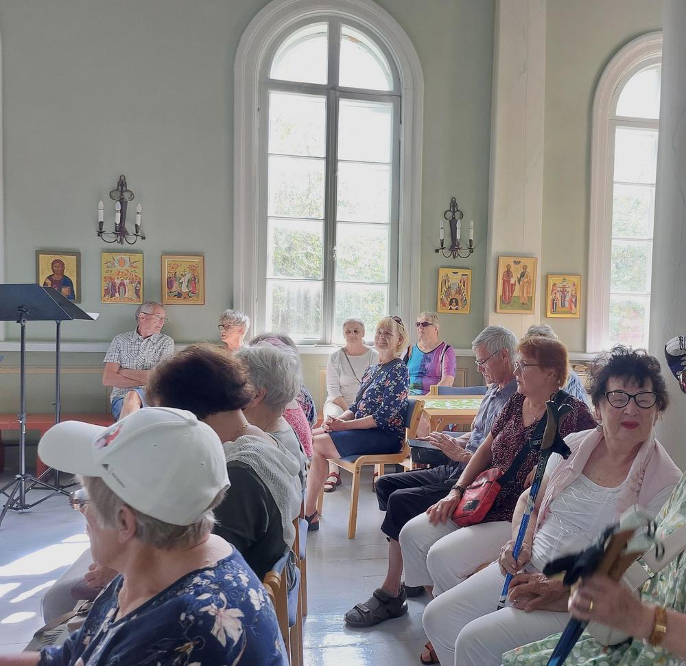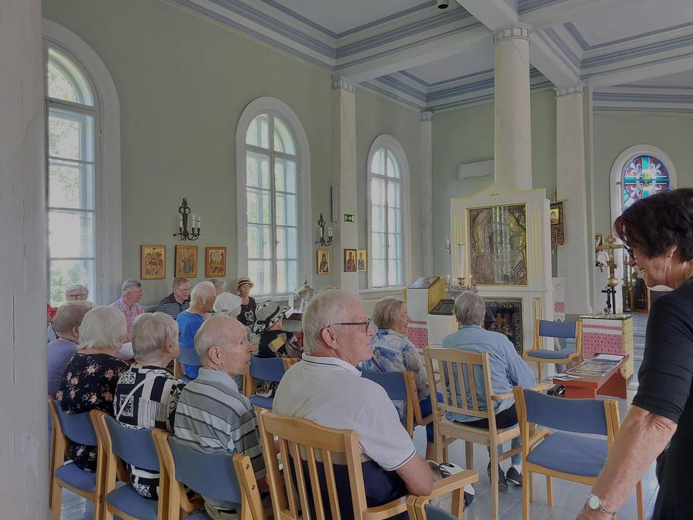 Keskiviikkona 5.6. tutustuimme Pikkukirkkoon eli nykyiseen ortodoksiseen kirkkoon. Markus Parkkonen kertoo meille kirkon monivaiheisen historian. Mielenkiintoinen kohde. Ja sieltä sitten torikaffeille.