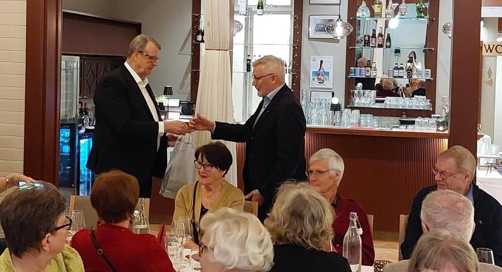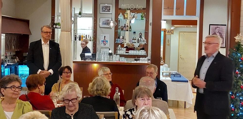 Uusi puheenjohtajamme Harri Halko piti perinteisen puuropuheen, jossa hän puhui hyvyydestä ja siitä, kuinka voimme jakaa hyvyyttä eteenpäin. Samalla Harri kiitti lämpimästi väistyvää puheenjohtajaa Pekka Huovilaa hänen mahtavasta työpanoksestaan yhdistyksen hyväksi. Illan kruunasivat maistuva jouluinen ruoka, erinomainen palvelu ja lopuksi tanssimusiikki, josta vastasi Duo Eero ja Pasi.