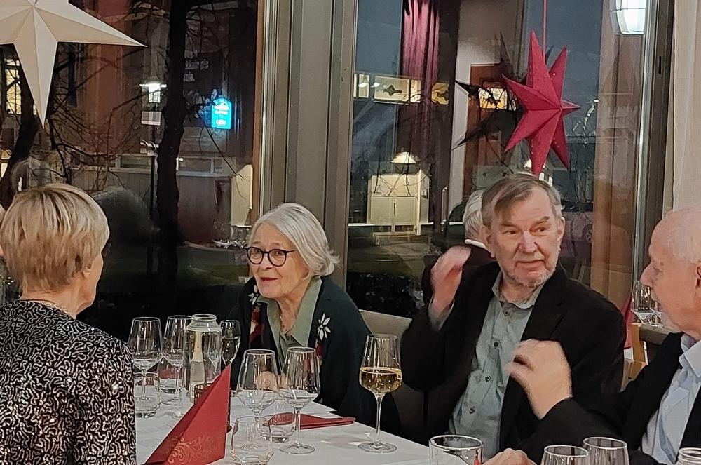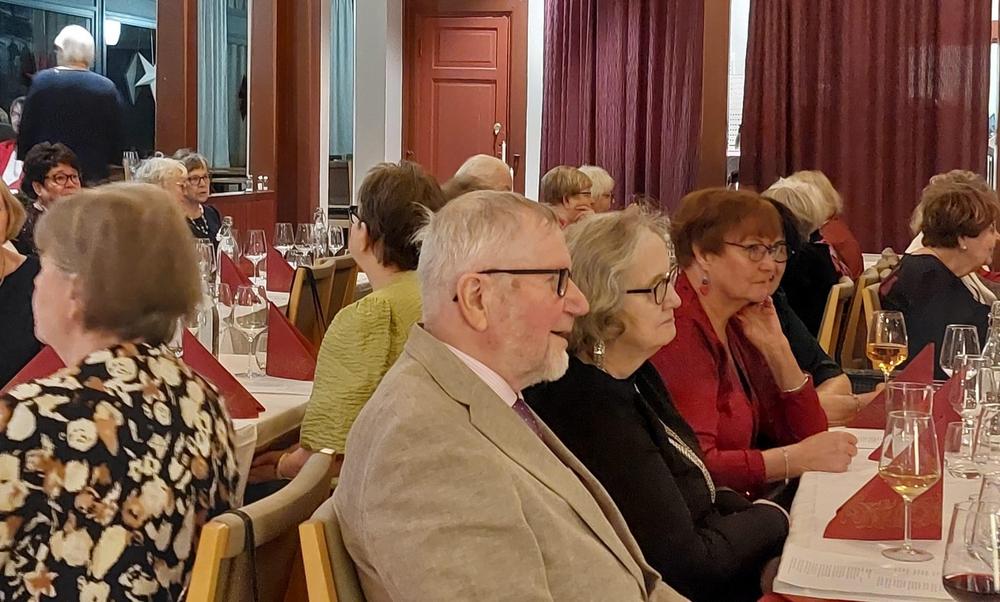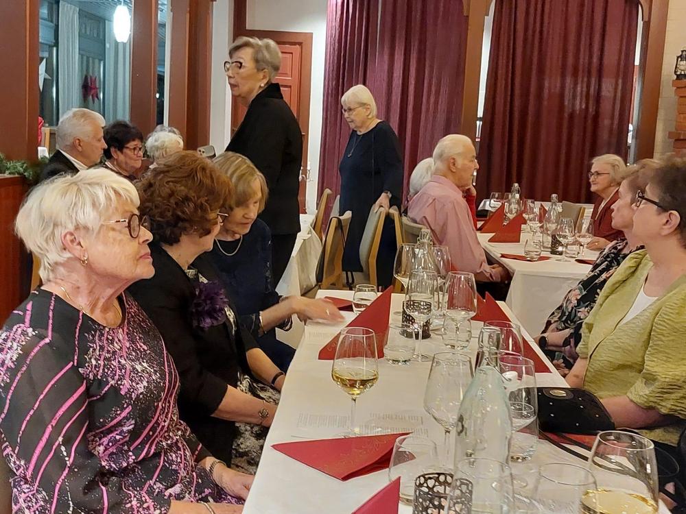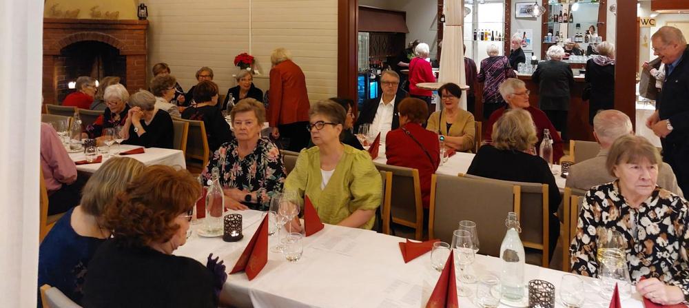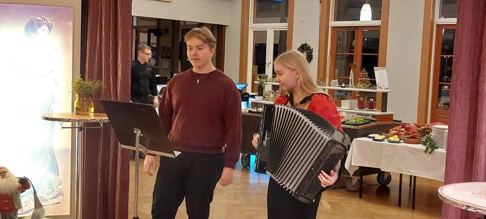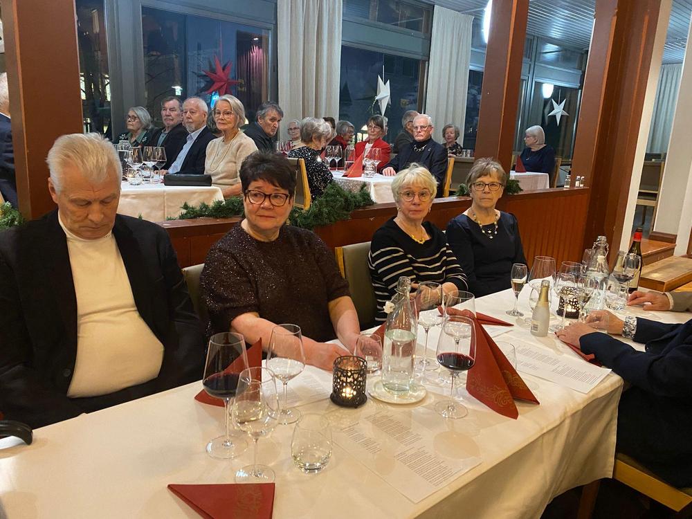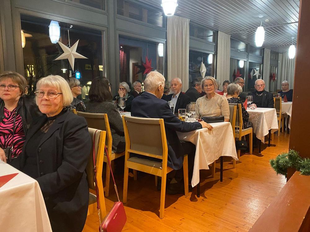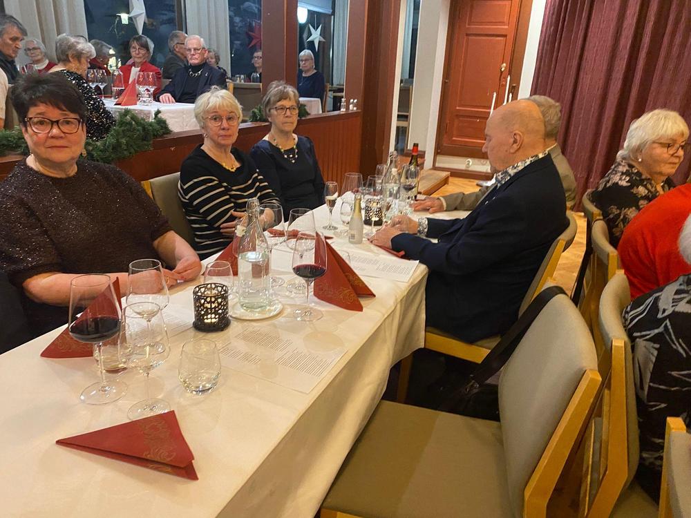 Tunnelma oli lämmin ja iloinen, kun runsas joukko senioreita kokoontui juhlistamaan pikkujoulua. Alkuun meitä viihdyttivät taidelukiolaiset Petja ja Anni herkällä ja kauniilla musiikilla – kiitos heille upeasta esityksestä!