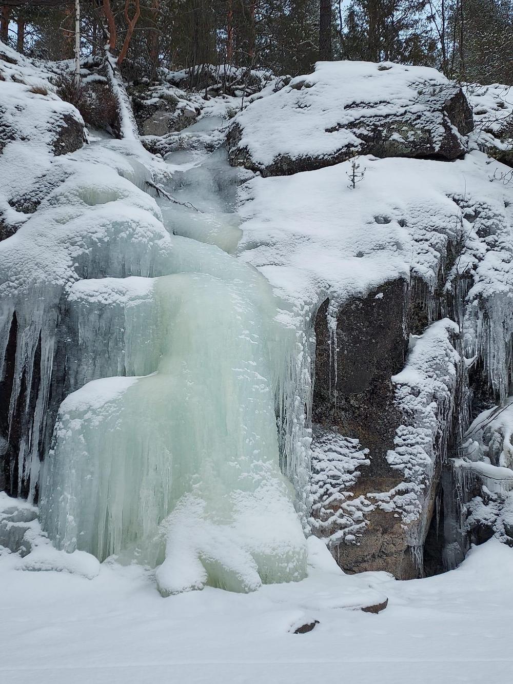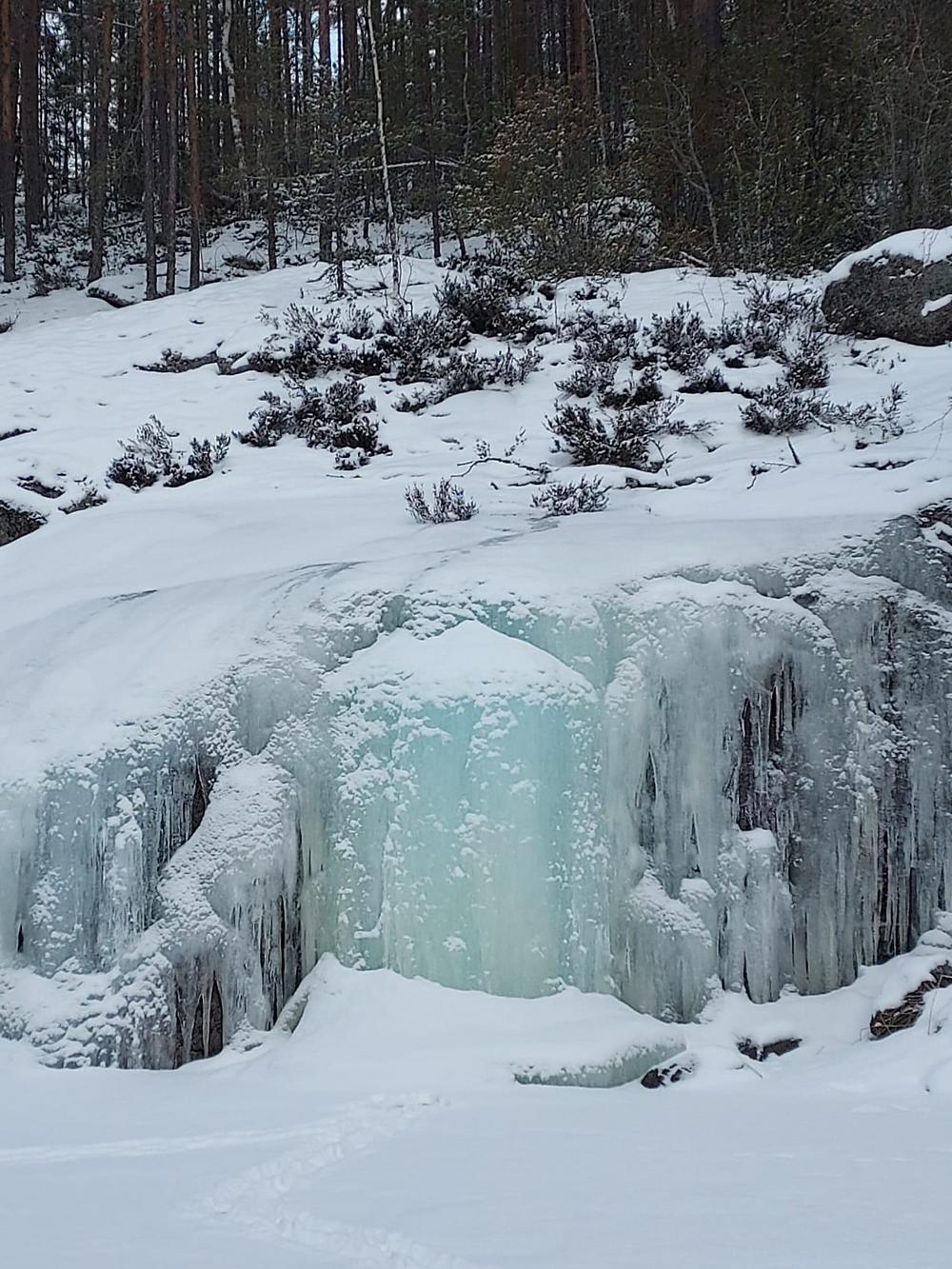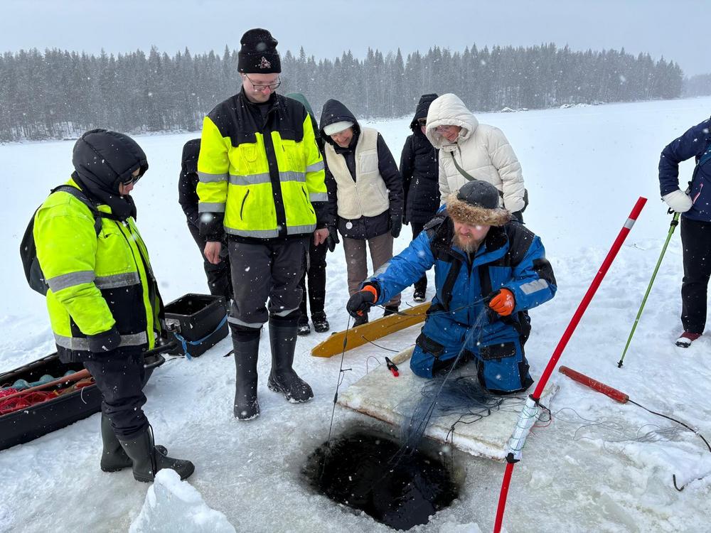 Raikas pakkassää, auringon pilkahdukset ja runsas kalansaalis verkoista tekivät retkipäivästä ikimuistoisen – vaikka pilkkikoukut jäivätkin tyhjiksi. Lämmittävä lohikeitto maistui retkeläisille ennen vauhdikasta moottorikelkkakyytiä huikean kauniille jääputoukselle. Kiitokset Eskolle, Kaijalle, Eeva-Liisalle ja koko mukavalle retkiporukalle tästä elämyksellisestä päivästä!