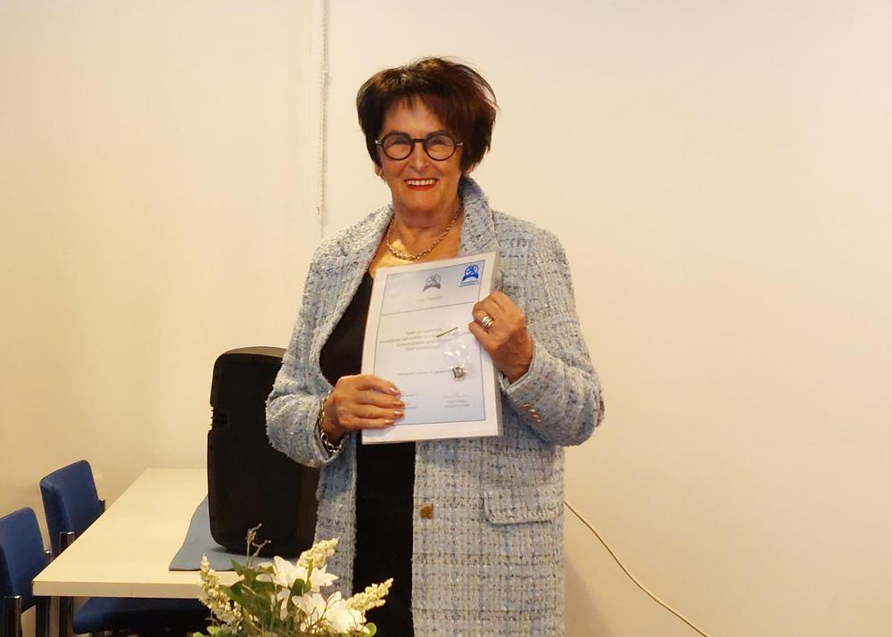 Varsinainen vuosikokous sujui joustavasti sihteeri Aijan ja kokouksen puheenjohtaja Onnin taitavassa ohjauksessa. Lisäksi saimme juhlahetken – Pirjo sai Senioriliiton kultaisen ansiomerkin! Toinen merkinsaaja on Marjatta. Hänelle luovutetaan merkki myöhemmin.