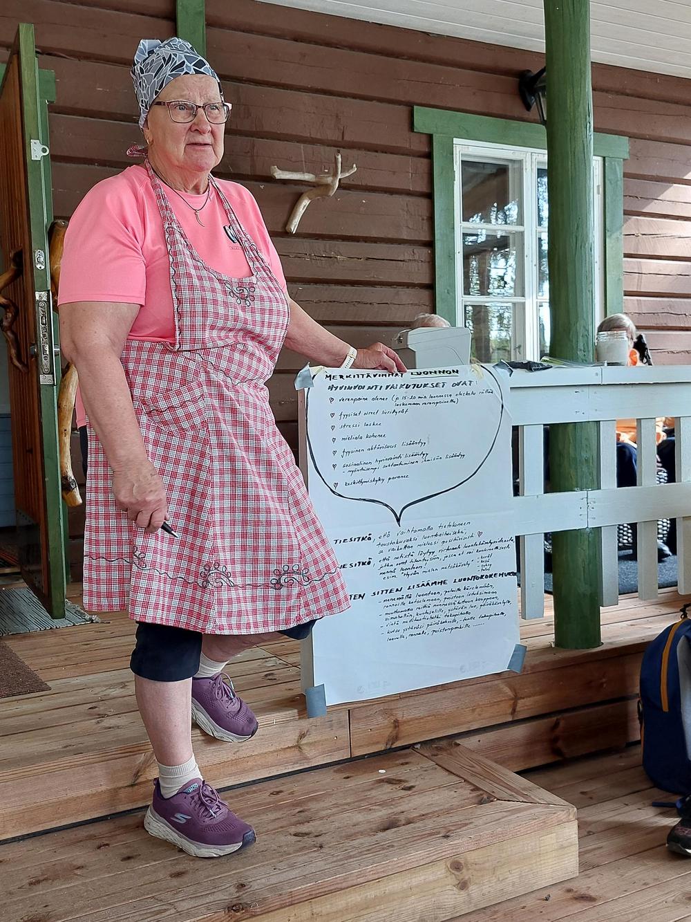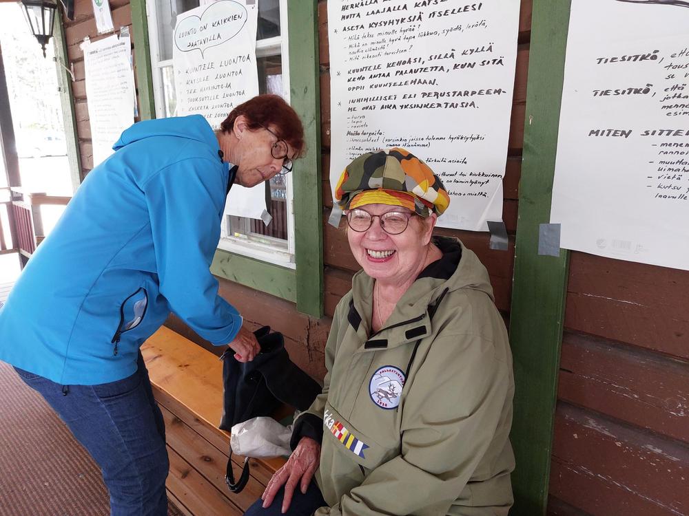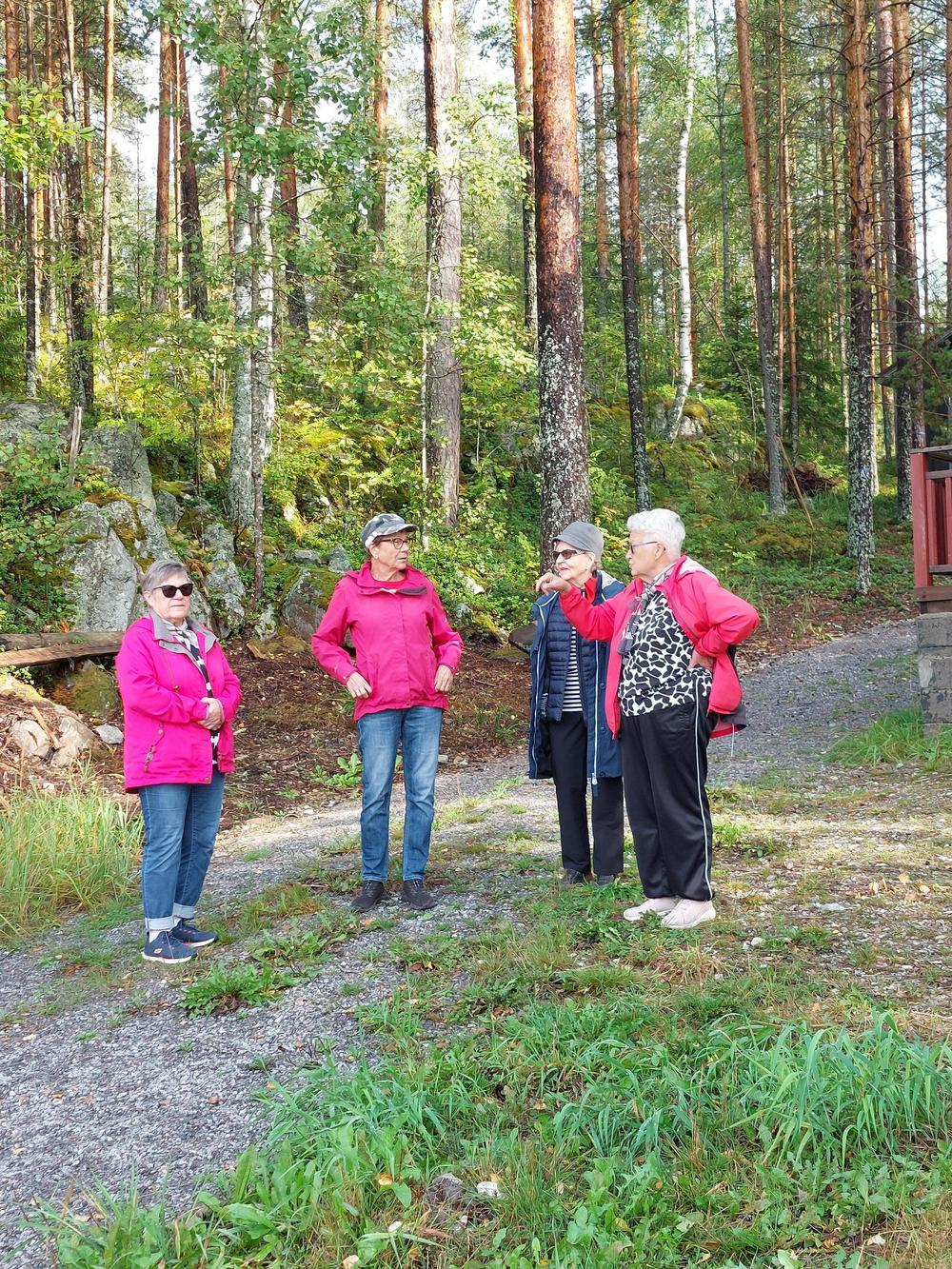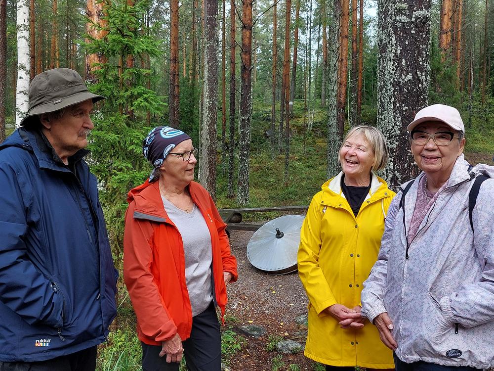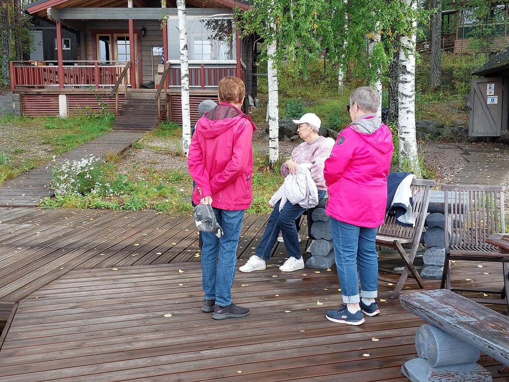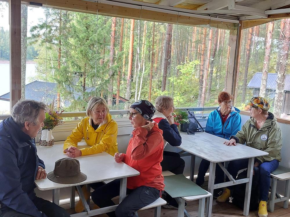 Sade väistyi ja tilalle tuli ihana syyspäivä luonnon helmassa. Emännät Kaija ja Eeva-Liisa tarjosivat meille erittäin maistuvaa retkiruokaa, ja jälkiruoaksi nautittiin lettuja – kiitos emännille! Vieläpä Esko keitti meille kodassa pannukahvit. Osa senioreista vaelteli metsäpolkuja, joku keräsi sieniä, ja jotkut pysähtyivät ihailemaan tyyntä Naistenlahtea – jokainen löysi oman tapansa nauttia luonnosta. Päivän aikana keskustelimme Kaijan johdolla siitä, mitä kaikkea luonto meille voi antaa – rauhaa, voimaa ja yhteyttä toisiimme. Lämpimät kiitokset järjestäjille!