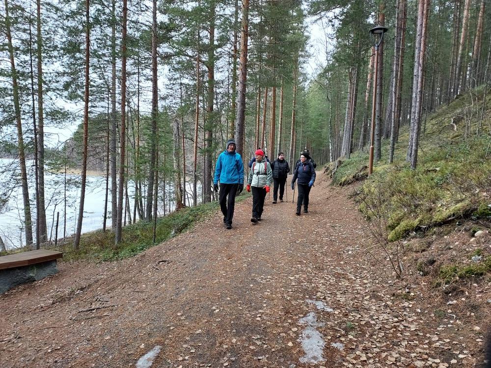 Punkaharjun jääliikuntapäivä vaihtui pikkuporukan patikoimiseksi keväisillä harjupoluilla. Hyvä sää, upeat maisemat, valmiit makkaratulet, mukavat jutut ja porukka loivat hyvän retken.